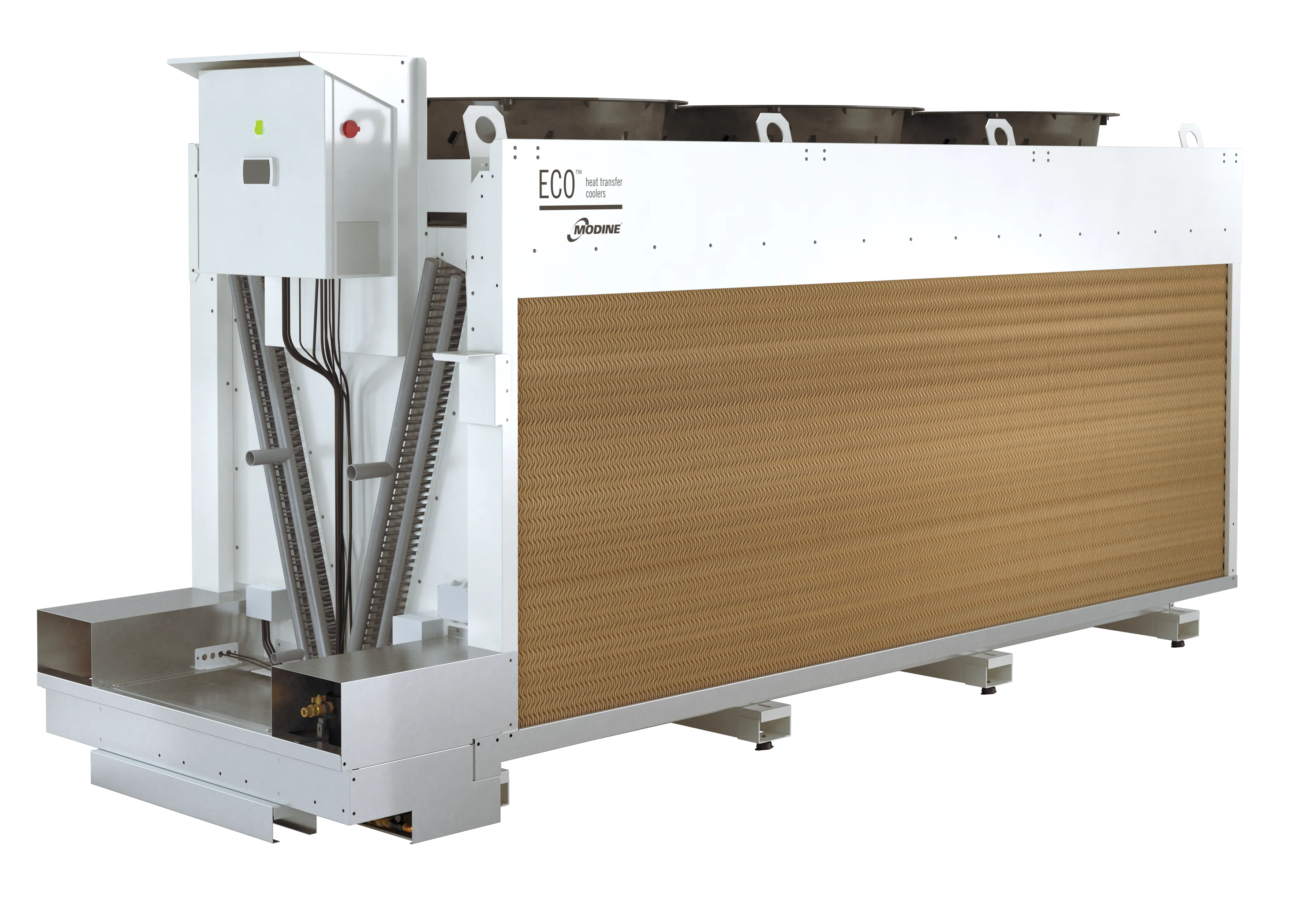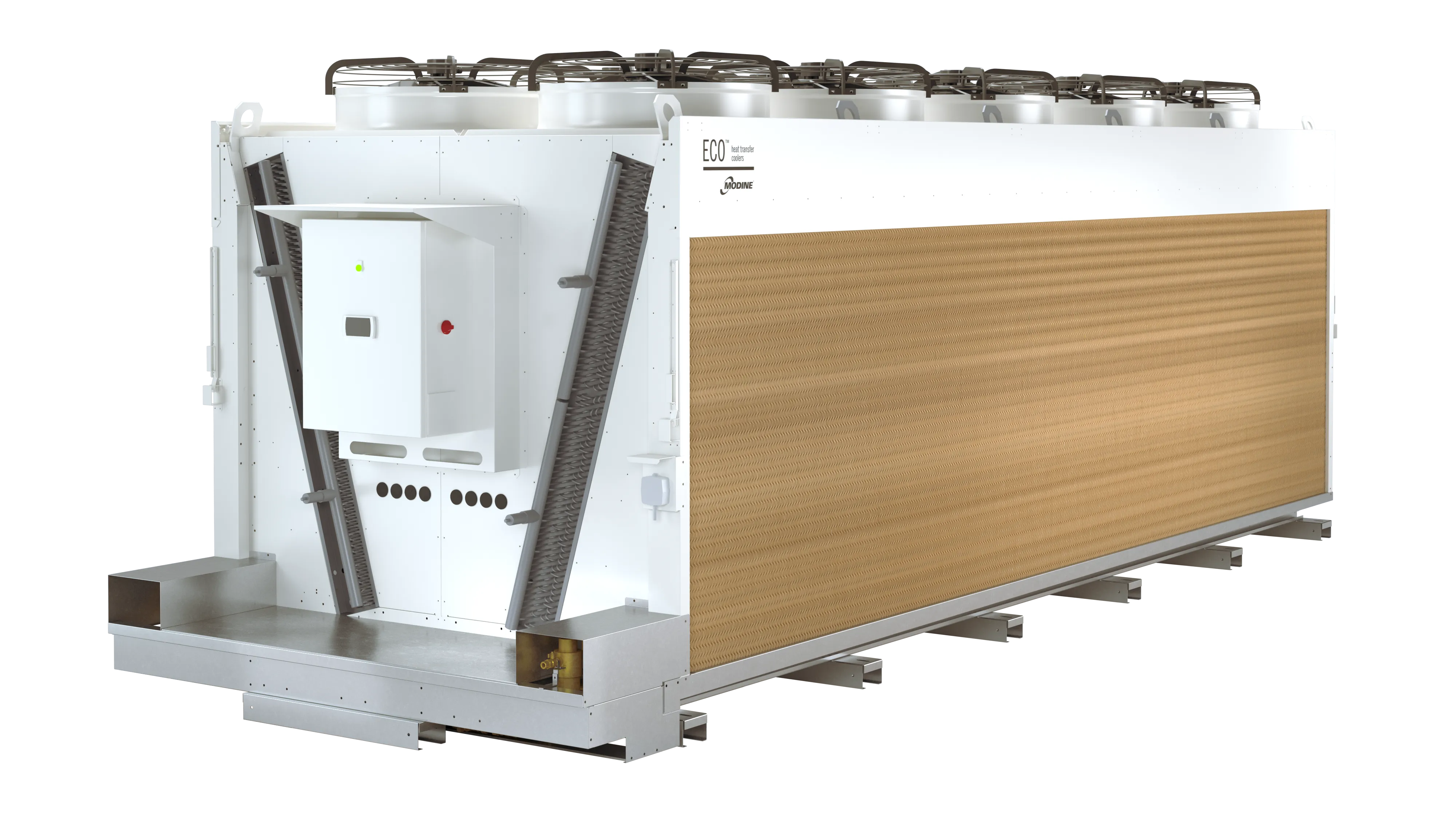 Modine foresaw the importance of adiabatic panels in improving cooling efficiency and developed ECO-BATIC®, a compact, high-performance line of gas coolers designed to meet new environmental standards using CO₂ refrigerants.